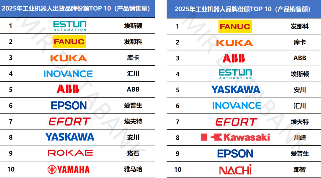 近日,MIR DATABANK数据板块全新发布2025年中国工业机械人TOP10榜单。榜单基于市场数据研究成果,别离从。